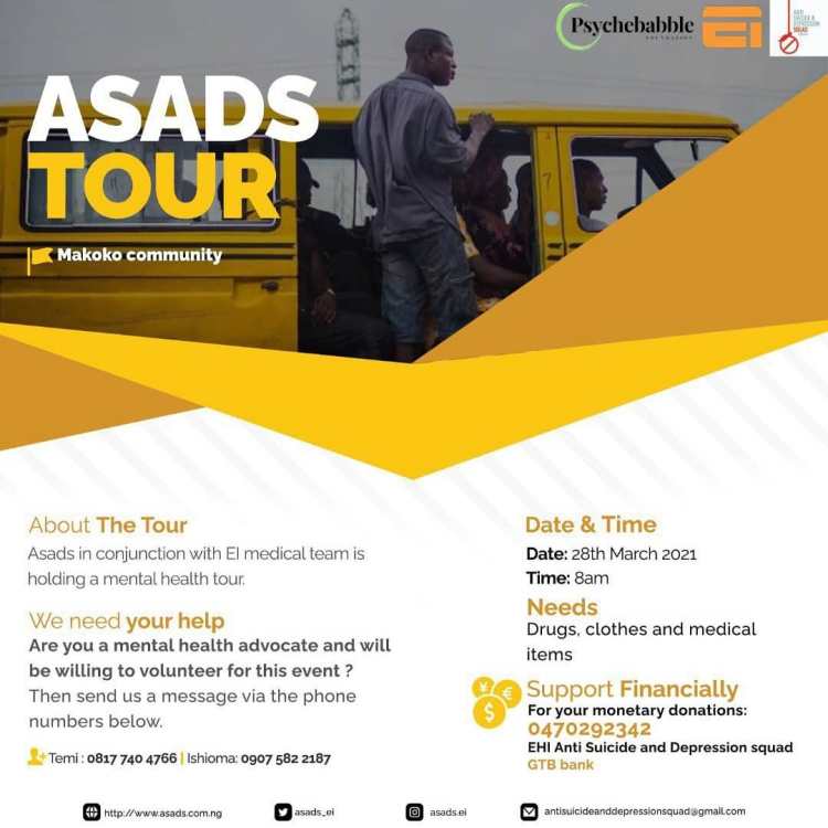 Psychebabble Foundation has partnered with Anti suicide and depression squad and the medical team of Executives Initiative to hold a mental health tour at Makoko community on the 28th March 2021