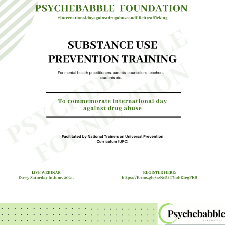 Training to commence Saturday 05th June, 2021 and is to commemorate International Day Against Drug Abuse and Illicit Trafficking.